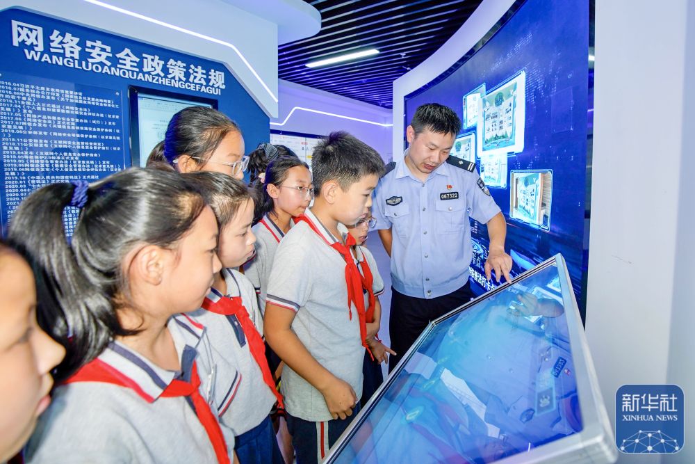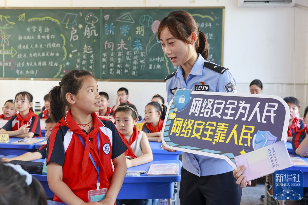 9月15日,民警在天津市濱海新區(qū)塘沽實驗小學為學生講解網絡安全知識。新華社發(fā)(杜鵬輝攝)