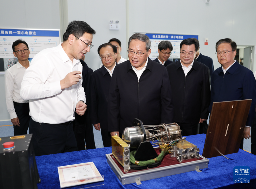 9月15日至16日,中共中央政治局常委、國務院總理李強在甘肅、青海調研。這是9月15日在甘肅蘭州,李強來到空間技術物理研究所航天高新產業(yè)園,觀看最新設備和零部件展示,詳細了解相關技術原理和產品產銷應用情況。新華社記者 黃敬文 攝
