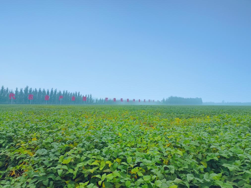 在山東省濟(jì)寧市嘉祥縣國家現(xiàn)代農(nóng)業(yè)產(chǎn)業(yè)園大豆原種繁育基地,一片片大豆長勢(shì)喜人。(受訪者供圖)