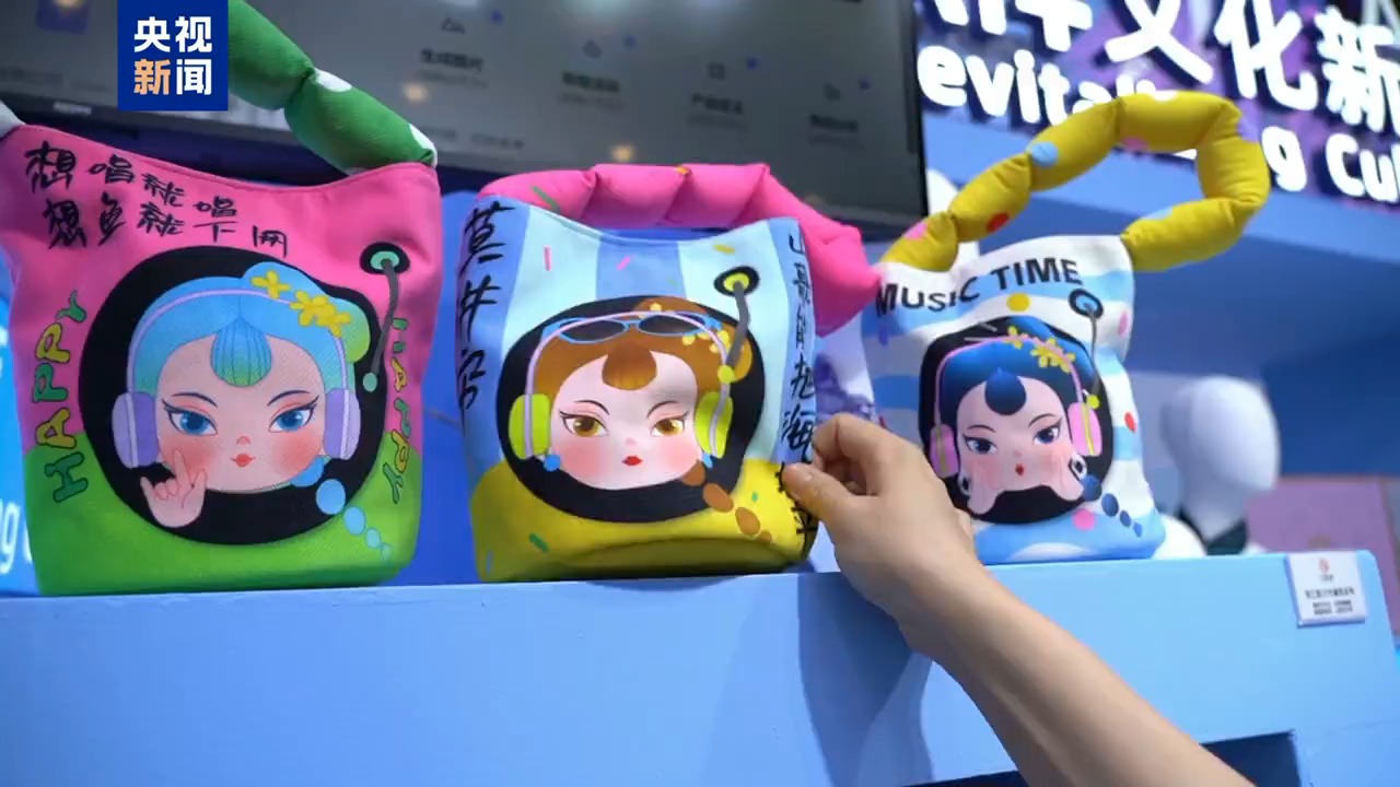 總臺央視記者 張歆:在人工智能專館,除了有炫酷的機器人,我們可以看到,這個水桶包就是由人工智能提供靈感的,以劉三姐為IP形象的文創(chuàng)產(chǎn)品。那么這個水桶包還引用了劉三姐山歌的內(nèi)容,“山歌能把海填平”。