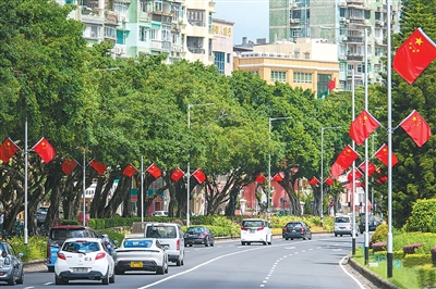 為熱烈慶祝中華人民共和國成立76周年,香港和澳門街頭裝扮一新,處處洋溢著喜慶的節(jié)日氣氛。五星紅旗與港澳區(qū)旗迎風(fēng)飄揚(yáng),祝福標(biāo)語和慶祝海報(bào)在街頭巷尾隨處可見。港澳特區(qū)政府與社會(huì)各界攜手推出了一系列豐富多彩的慶?;顒?dòng)和優(yōu)惠措施。