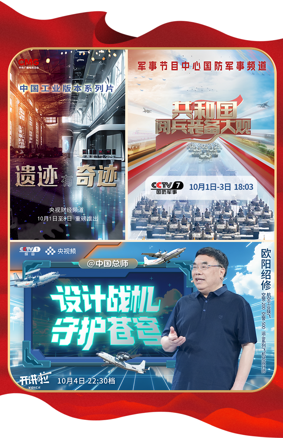 紀錄片《遺跡有奇跡》,深入探訪八個不同行業(yè)的工業(yè)遺址,展現(xiàn)中國工業(yè)發(fā)展的輝煌歷程。九三閱兵現(xiàn)場,新型察打一體無人機、空警-500預警機等硬核裝備令人振奮,《開講啦》“@中國總師”解讀中國軍工硬核實力,系列節(jié)目《共和國閱兵裝備大觀》帶你在鋼鐵洪流的轟鳴聲中見證軍工裝備的迭代升級,展示新時代中國科技創(chuàng)新帶來的大國力量!向前進,向前進,我們有信心、有底氣!