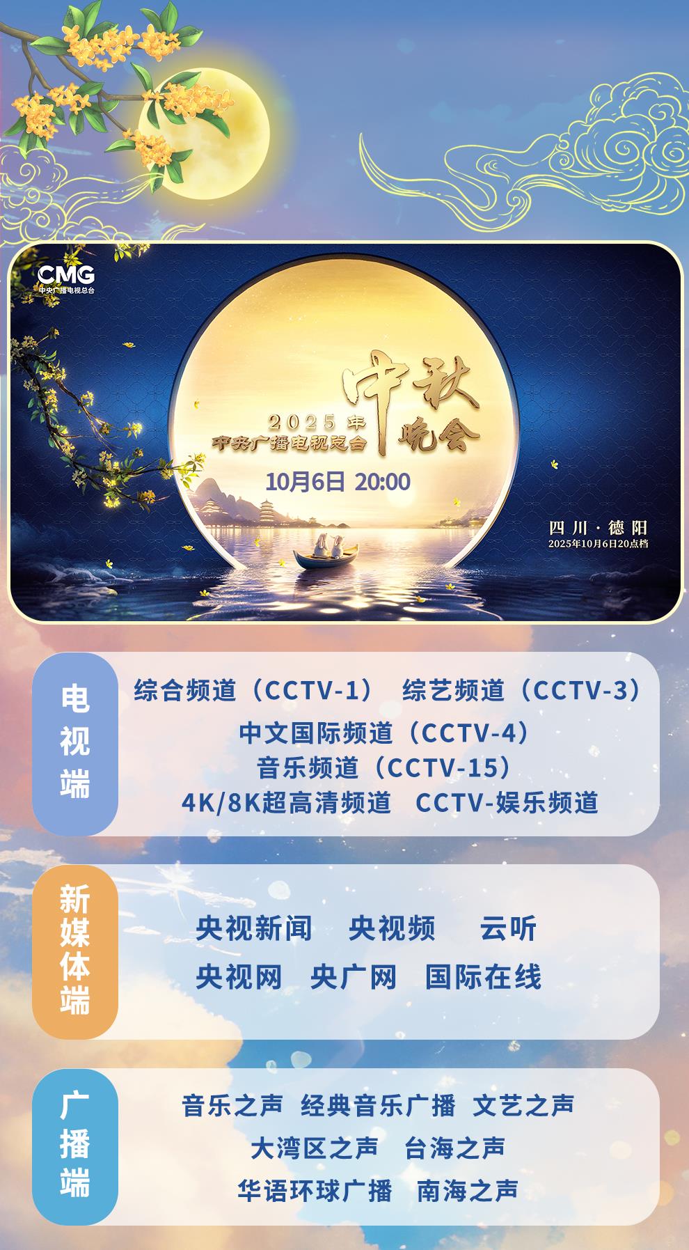 月照古今,共敘團圓。《中央廣播電視總臺2025年中秋晚會》主舞臺選址四川德陽玄珠湖,以蜀道、明月、山水營造“月從蜀道升,人向鏡中圓”的唯美意境?!渡皆聺M》《是吾鄉(xiāng)》《一輪秋》三個篇章,創(chuàng)新視聽語言呈現(xiàn)三星堆的神秘古韻、智能制造的硬核力量、非遺樂器的悠遠回響,為全球受眾奉獻一場巴蜀大地文化與中秋團圓意蘊交織相融的“團圓盛宴”。央視新聞、央視頻推出“秋晚探班”相關產(chǎn)品,帶你“打卡”錄制現(xiàn)場,“解鎖”臺前幕后。