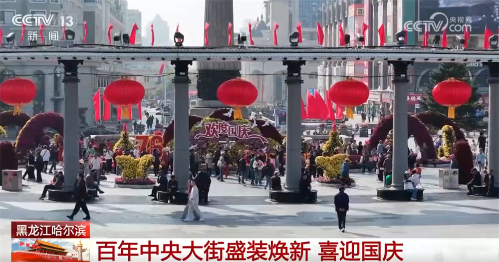 國慶節(jié)來臨,黑龍江哈爾濱中央大街披上“中國紅”盛裝,兩千余面國旗點(diǎn)綴百年老街,節(jié)日氛圍濃郁。從主街入口一直延伸至防洪紀(jì)念塔,紅色浪潮沿街道鋪展。
