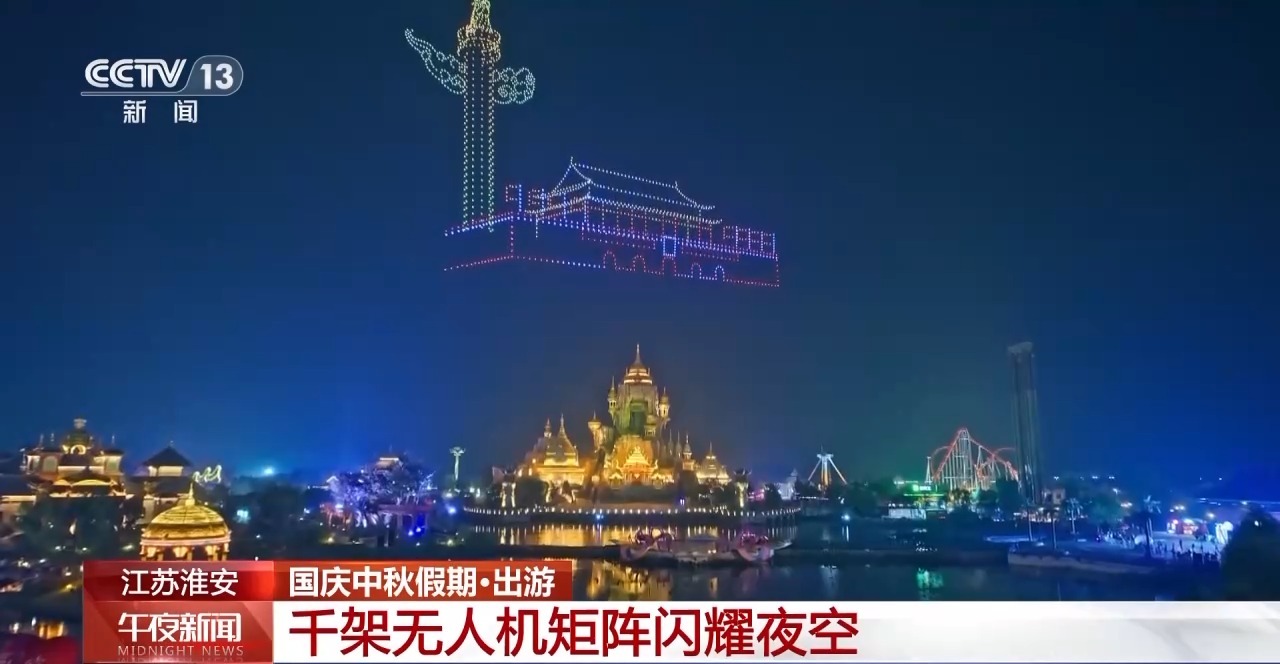 江蘇淮安:千架無人機(jī)矩陣閃耀夜空 “水幕+煙花”演繹雙重浪漫