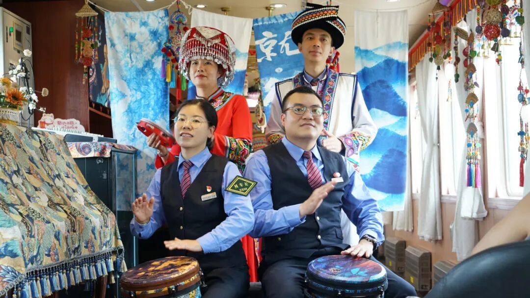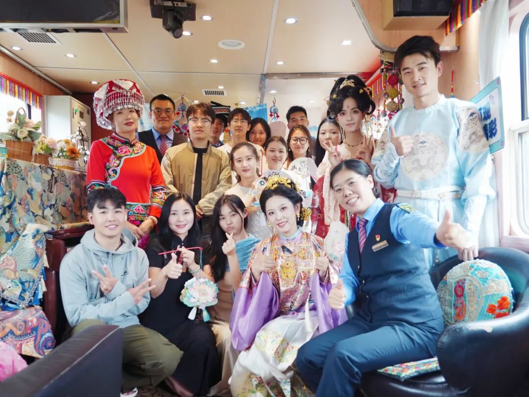 “旅客朋友們,歡迎乘坐本趟列車,中秋佳節(jié)將至,我們在2號餐車準(zhǔn)備了特色活動,誠邀大家共慶佳節(jié)!”列車長李文雯的聲音通過廣播傳遍車廂。隨即《納西三部曲》旋律響起——身著絢麗民族服飾的列車員們,拉著周圍旅客一同跳起納西族舞蹈,歡快的節(jié)奏瞬間點燃車廂氣氛。