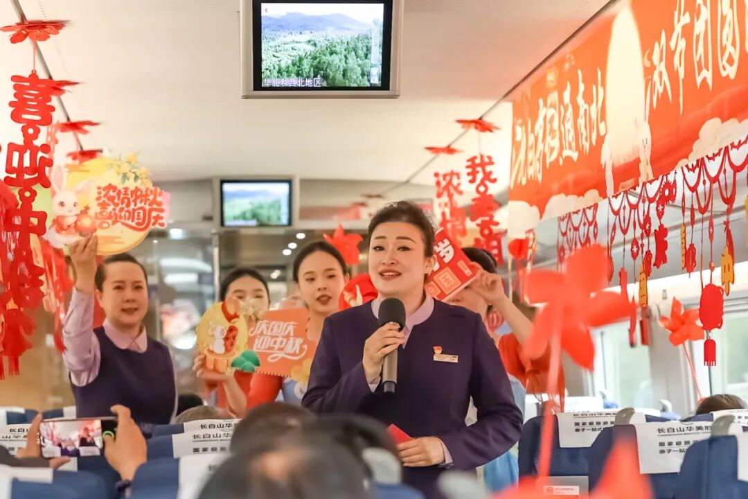 沈佳高鐵沈白段開通運(yùn)營后,迎來第一個國慶中秋假期。長春客運(yùn)段在長春至青島北的G3565次列車上舉辦“‘我的鐵路風(fēng)景’——沈白高鐵通南北 雙節(jié)團(tuán)圓路更捷”列車聯(lián)歡活動。