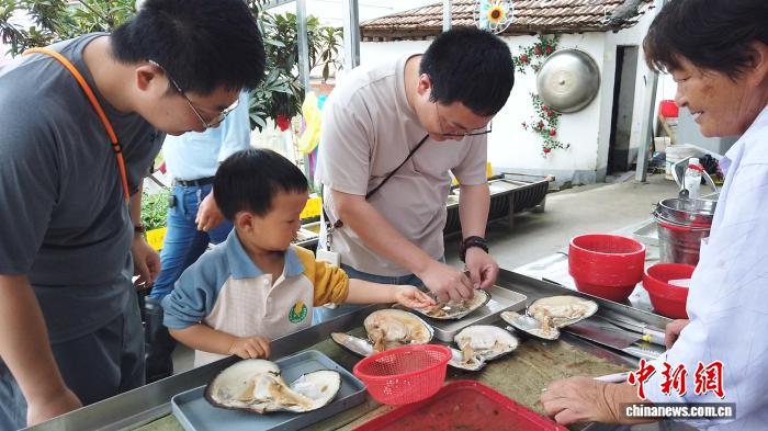 2025年6月,家長與孩子正在進(jìn)行開蚌取珠體驗。曹丹 攝