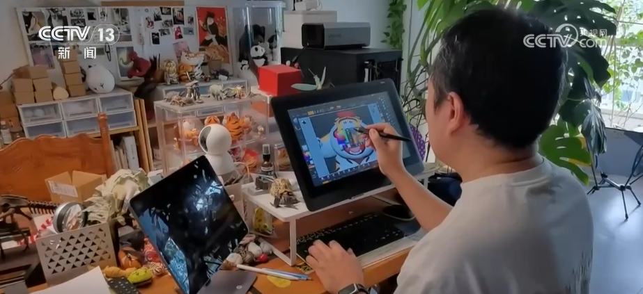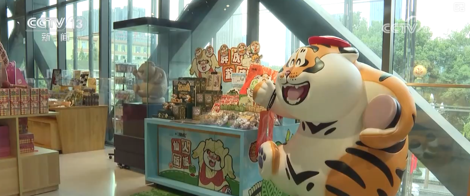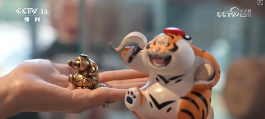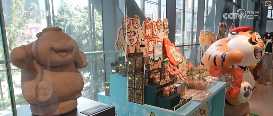 成都博物館文化創(chuàng)意產(chǎn)業(yè)部工作人員伍娜介紹,在整個文創(chuàng)行業(yè)發(fā)展起來后,文博行業(yè)也進行了一些大膽的嘗試,包括和一些藝術家、非遺的傳承人,以及現(xiàn)在比較受年輕人歡迎的IP來進行一些跨界的合作。他們想了一個創(chuàng)意點,就是在“胖虎”的手上拿了很多具有成都代表性的元素,比如說茶館文化就拿了茶壺。