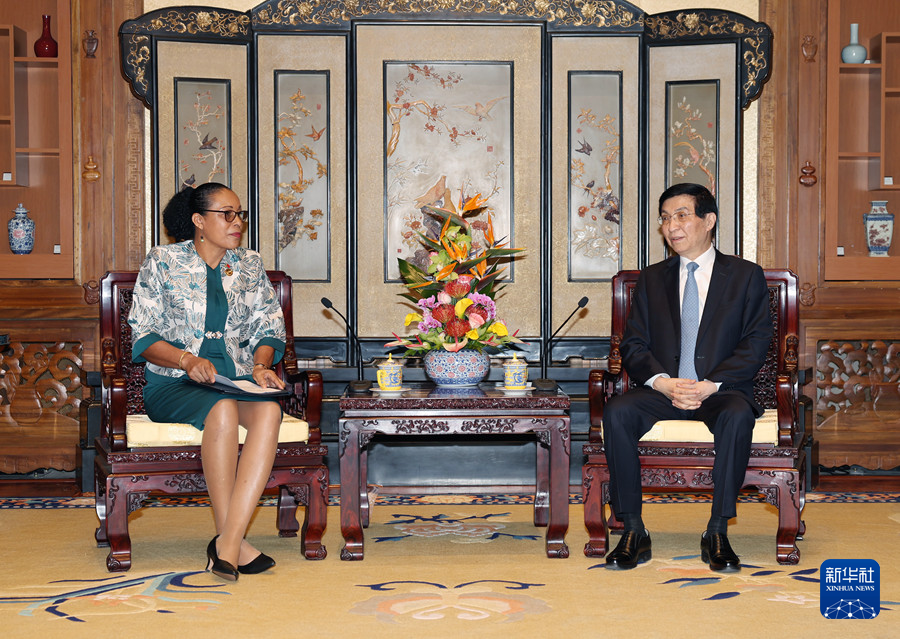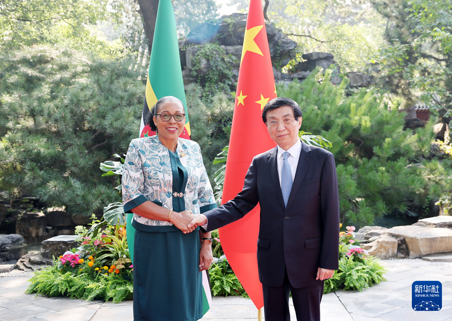 全國(guó)政協(xié)主席王滬寧14日在京會(huì)見來華出席全球婦女峰會(huì)的多米尼克總統(tǒng)伯頓。