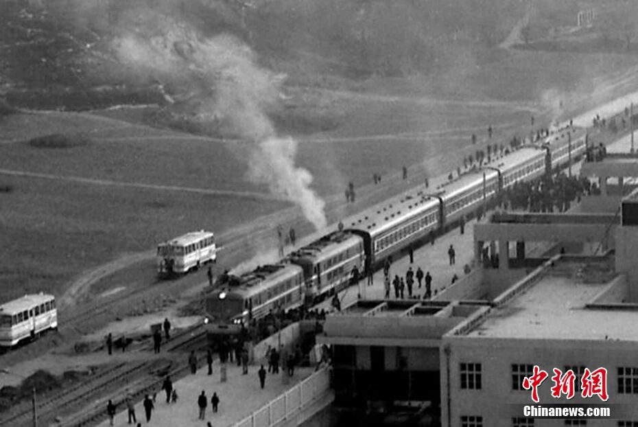 1991年12月26日,西延鐵路建成通車,圖為首輛列車到達(dá)延安火車站。西安鐵路局 供圖