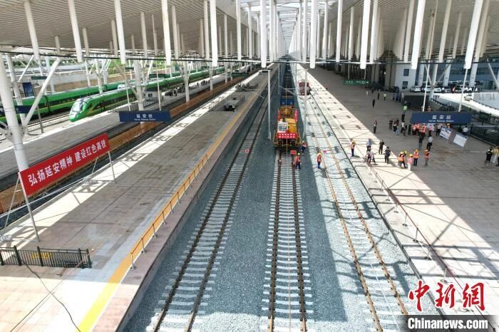 圖為2025年7月1日西延高鐵鋪軌到達(dá)延安站。張遠(yuǎn) 攝