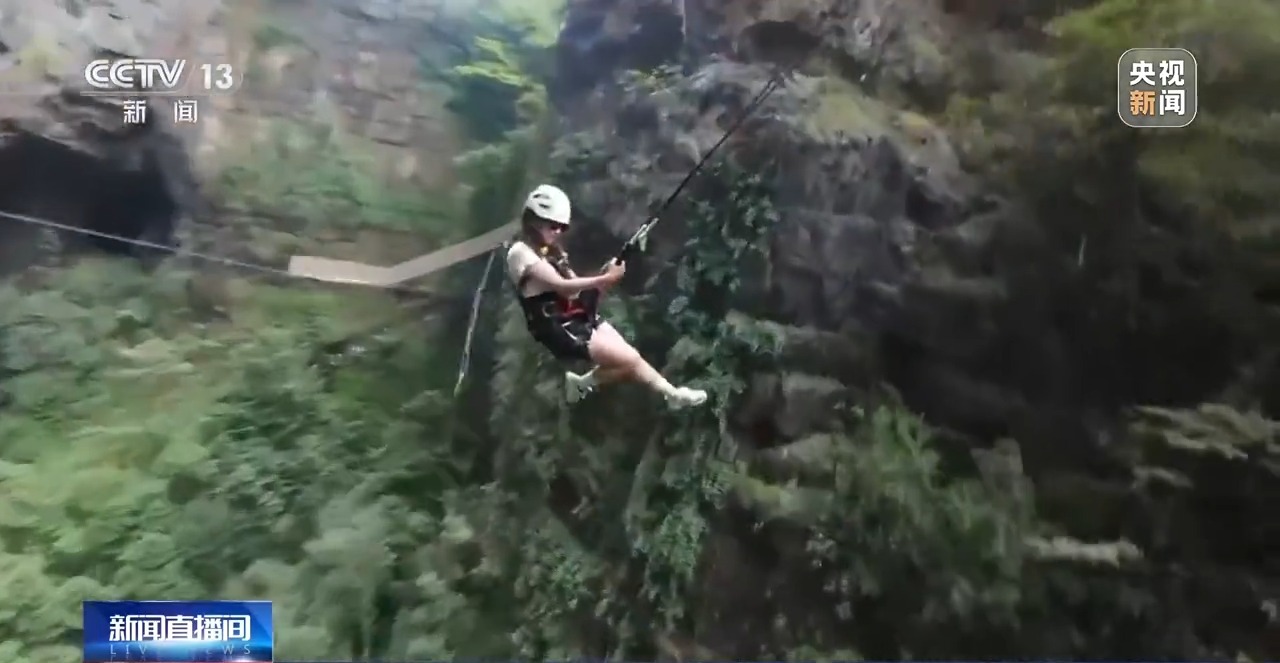 除了用丑萌可愛的物品彰顯個性,旅行“必出片兒”也成為當(dāng)下很多年輕人表達(dá)自我的一種方式。今年暑期開始,貴州開陽縣猴耳天坑景區(qū)異?;鸨?。這里是一處典型的巖溶漏斗,直徑約300米,坑深約280米,依托獨(dú)特的地質(zhì)奇觀,當(dāng)?shù)亻_發(fā)出了蹦極、大秋千、探洞等多種極限運(yùn)動。而就在如此驚險刺激的體驗(yàn)之下,也要出片!