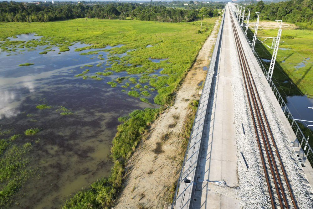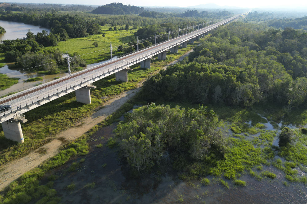 走進(jìn)馬來(lái)西亞彭亨州的馬東鐵項(xiàng)目建設(shè)現(xiàn)場(chǎng),一幅人與自然和諧共生的畫(huà)卷徐徐展開(kāi):筆直的鐵路在茂密雨林中延伸,鋼鐵軌道穿越濕地秘境,數(shù)公里長(zhǎng)的橋梁橫跨原野,隧道出口處綠意盎然,盤(pán)旋的鳥(niǎo)兒以及嬉戲的野鴨相映成趣……一幕幕工程與自然交融的生動(dòng)圖景讓人印象深刻。