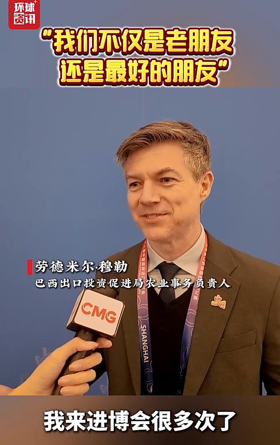 巴西出口投資促進局農業(yè)事務負責人勞德米爾·穆勒接受總臺環(huán)球資訊廣播記者采訪時表示,巴西每年都積極參與進博會,不僅是進博會的老朋友,更是最好的朋友。