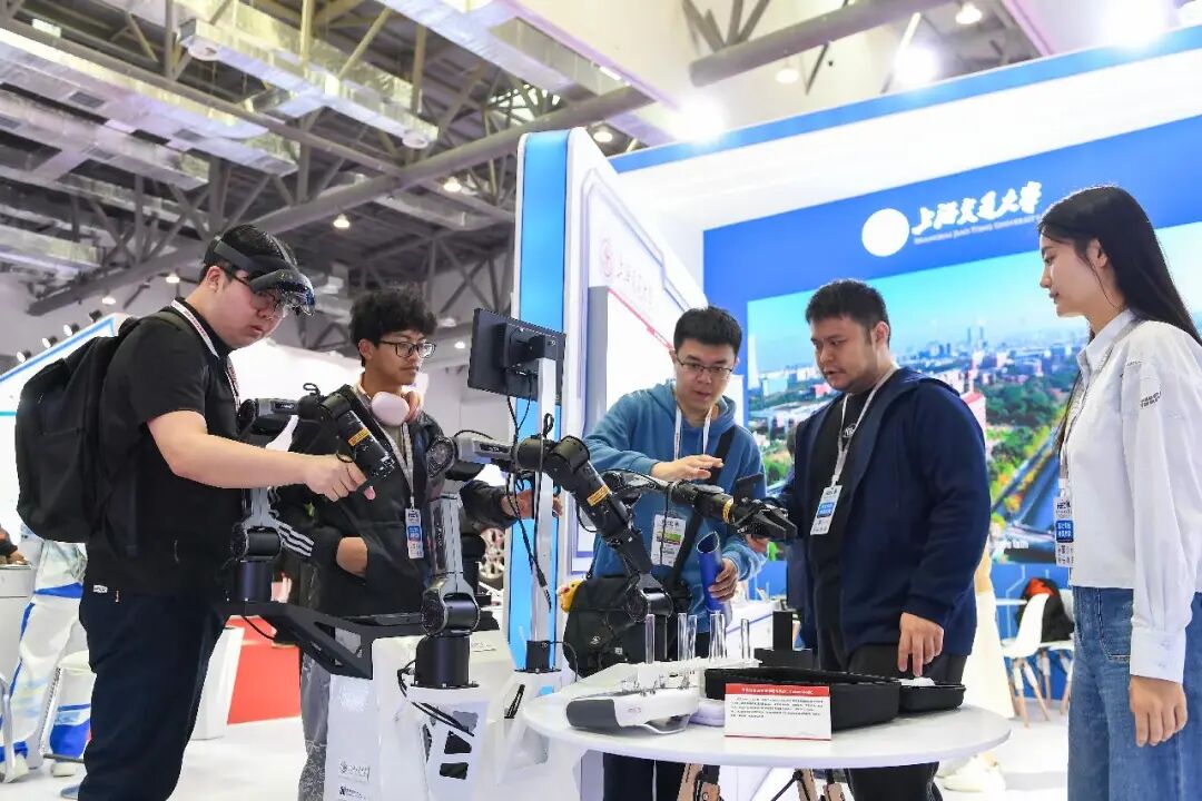 觀眾在第63屆高等教育博覽會上了解機械臂。新華社記者 張楠 攝