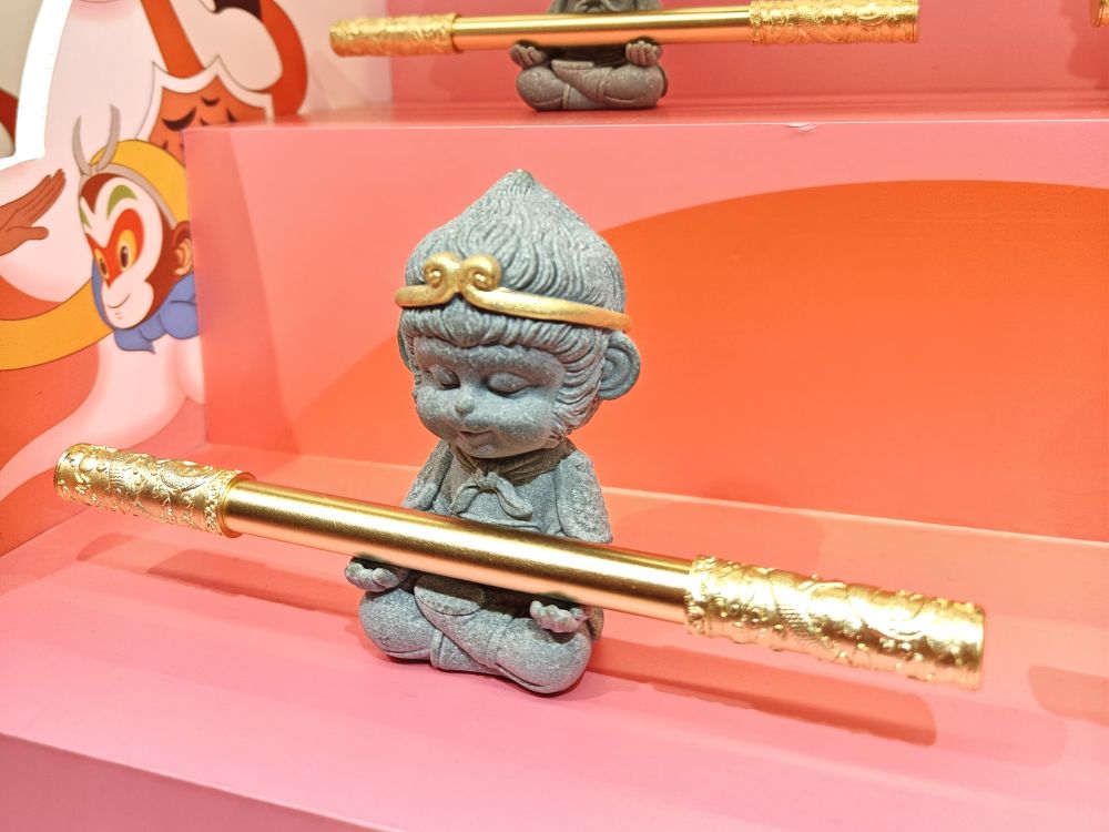 朱炳仁·銅開發(fā)的國潮款產(chǎn)品“悟空如意金箍筆”。新華社記者張璇 攝