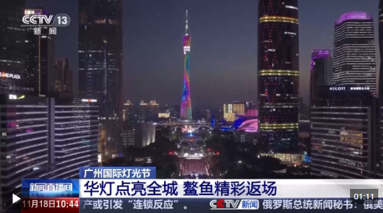 燈光節(jié)亮燈儀式上,廣州塔、東塔、西塔首次實現(xiàn)三塔聯(lián)動上演璀璨光影秀,以觀眾席為主舞臺,將傳統(tǒng)嶺南文化與現(xiàn)代科技有機(jī)融合,藝術(shù)表達(dá)與全運(yùn)活力相互交融。機(jī)器狗、燈光獅等創(chuàng)新元素也輪番上演。