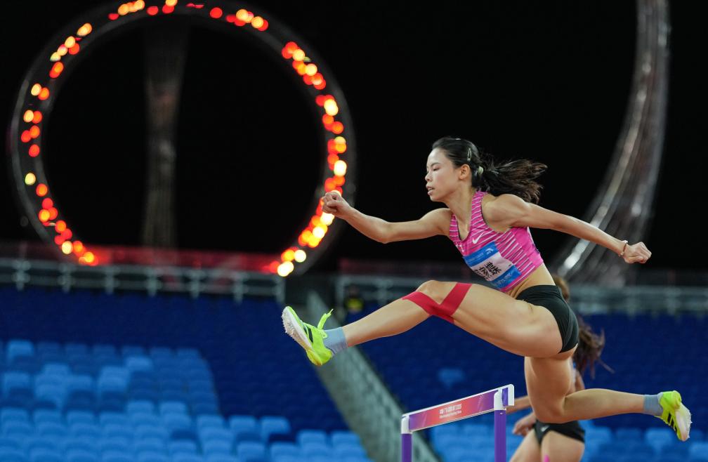 11月17日,廣東隊選手莫家蝶在田徑女子400米欄決賽中。