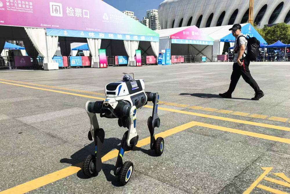 11月9日,機器人在第十五屆全國運動會開幕式現(xiàn)場表演。