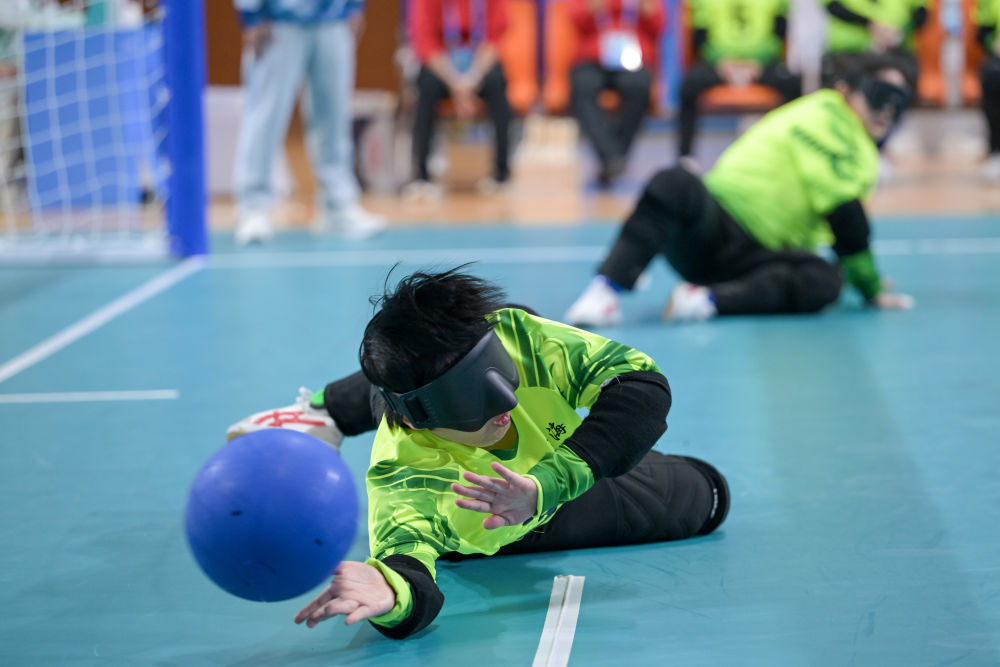 12月8日,在廣州舉行的全國第十二屆殘疾人運(yùn)動(dòng)會(huì)暨第九屆特殊奧林匹克運(yùn)動(dòng)會(huì)盲人門球項(xiàng)目女子組小組賽中,浙江隊(duì)13:3戰(zhàn)勝上海隊(duì)。新華社記者 胡智軒 攝