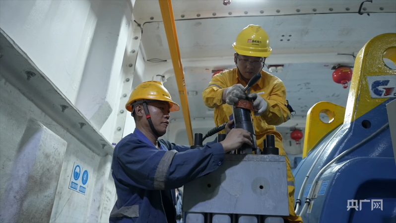 李亞雄與同伴對風機內部部件進行巡檢維護(央廣網發(fā) 受訪者供圖)