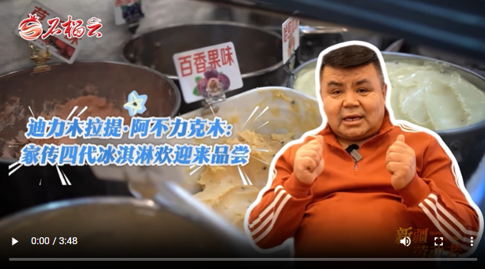 他爸爸還廣收徒弟,先后有266位疆內(nèi)外徒弟學(xué)成后自己開店、傳藝。能讓更多人品到美味,迪力木拉提是開心的。更讓他開心的是當(dāng)?shù)厝思案鞯赜慰蛯λ冶苛艿暮駩邸!拔矣袝r候這樣想,如果我的顧客回家的時候,能想起我家的冰淇淋,再能想起我來,我就特別開心?!钡狭δ纠嵴f。
