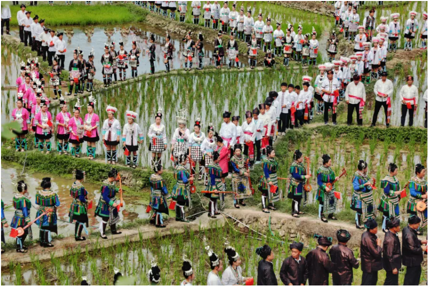 “村舞”薈萃了各族群眾的傳統(tǒng)舞蹈精華;“村BA”源自苗族“六月六”吃新節(jié)的傳統(tǒng)賽事,“村超”延續(xù)著榕江80年的民間足球熱情,“村馬”是水族端節(jié)千年傳承的賽馬習(xí)俗,“村歌”則扎根侗族大歌、苗族飛歌等的非遺土壤。