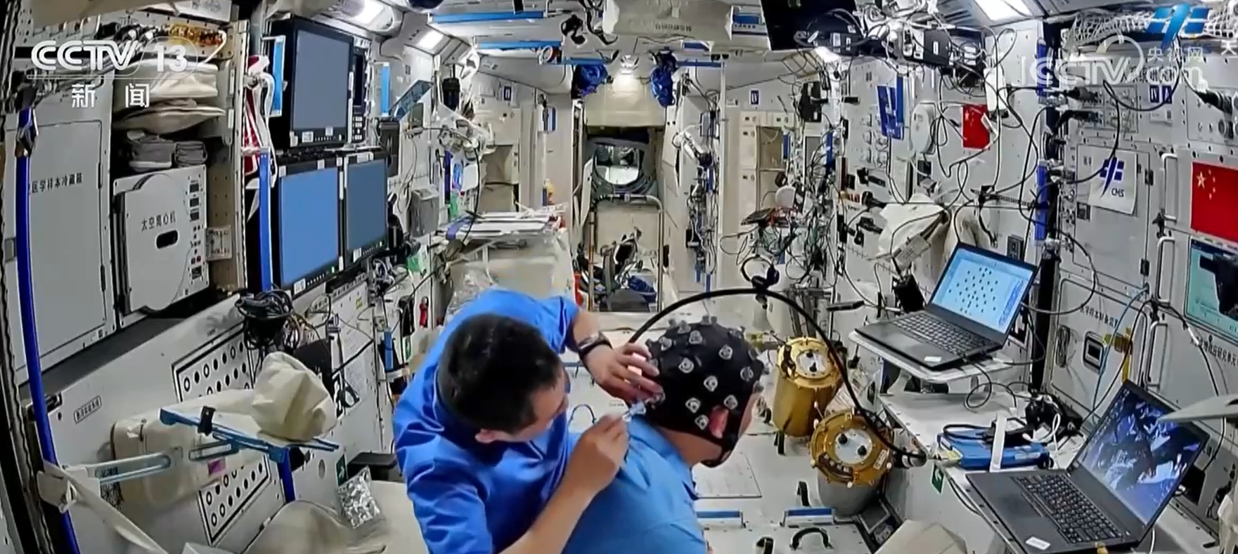 在軌腦電測(cè)試研究相關(guān)項(xiàng)目按計(jì)劃開展,乘組利用腦電設(shè)備完成了上下視野研究、執(zhí)行功能訓(xùn)練、探索利用研究等多個(gè)項(xiàng)目的實(shí)驗(yàn)測(cè)試工作;使用近紅外腦功能成像設(shè)備開展空間腦網(wǎng)絡(luò)時(shí)變特性實(shí)驗(yàn),通過采集相關(guān)數(shù)據(jù),開展長(zhǎng)期空間飛行環(huán)境對(duì)航天員腦功能網(wǎng)絡(luò)影響及大腦對(duì)外部環(huán)境變化進(jìn)行了自發(fā)調(diào)整與適應(yīng)機(jī)制研究。