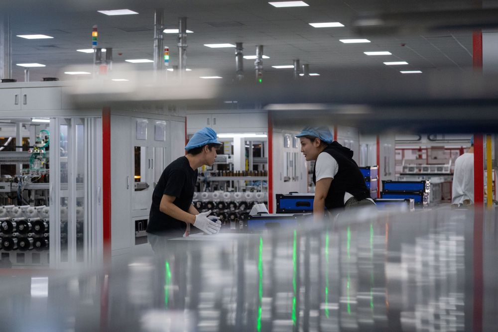 2025年9月22日,工人在新疆巴音郭楞蒙古自治州若羌縣的國晟企誠新能源有限公司生產(chǎn)光伏電池片。新華社記者 江文耀 攝