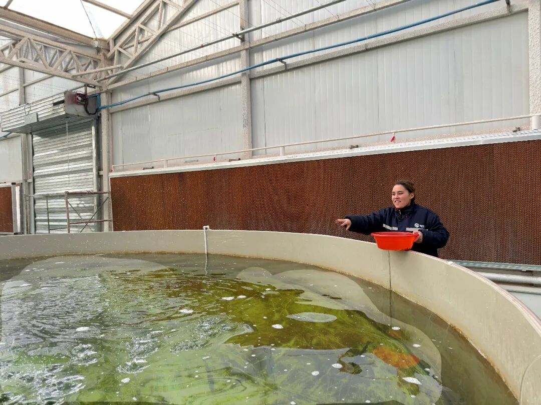 新疆疆漁兒農業(yè)科技有限公司員工正在喂養(yǎng)餌料??κ驳貐^(qū)融媒體中心 記者李霖 攝