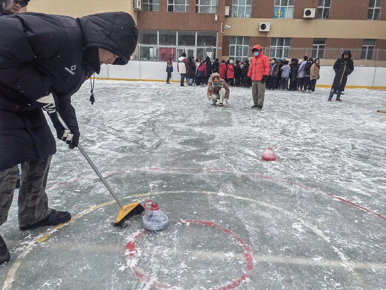 克拉瑪依市第五小學(xué)師生自制“冰壺”,在校園進(jìn)行比賽。克拉瑪依市第五小學(xué) 供圖