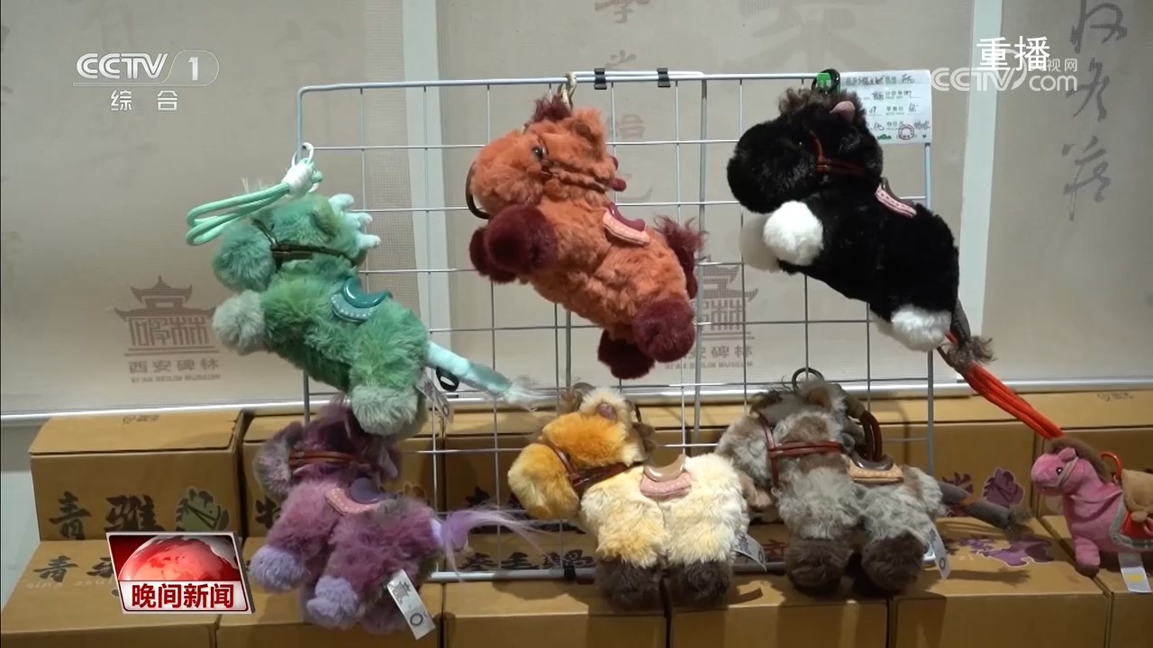在西安碑林博物館,以唐代“昭陵六駿”石刻為原型的毛絨玩具集歷史文化和現(xiàn)代設(shè)計(jì)于一體,線下門(mén)店經(jīng)常賣(mài)斷貨。