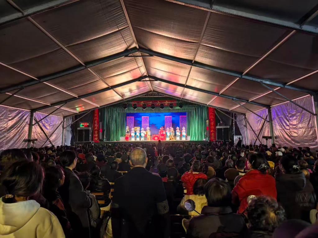 圖為2月21日晚上浙江省義烏市王高畈村的婺劇演出現(xiàn)場。(受訪者供圖)