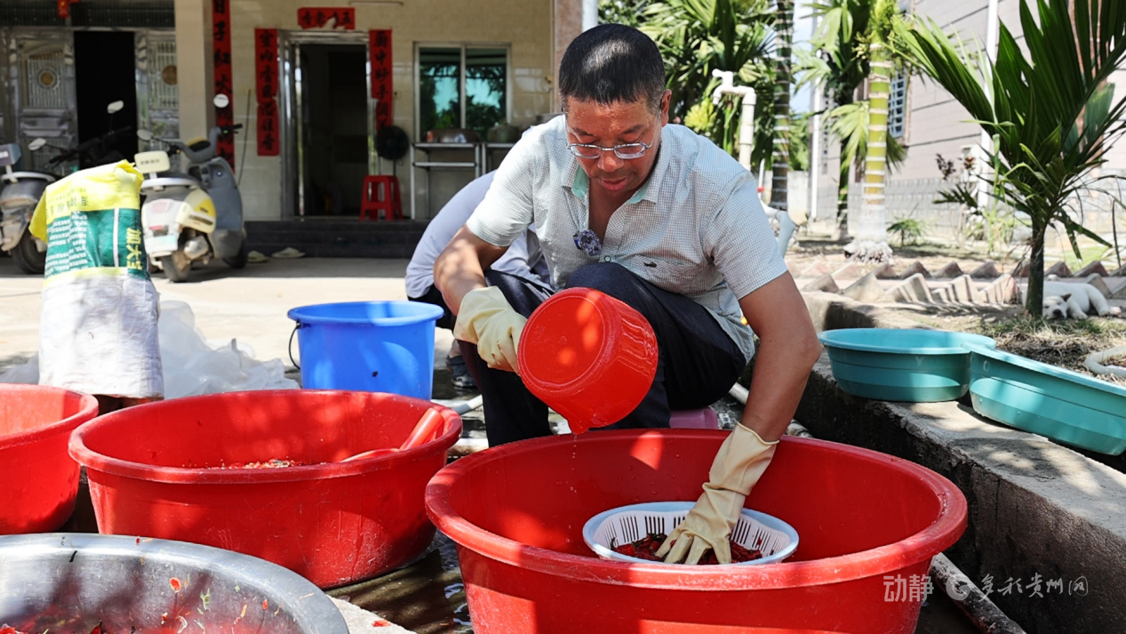 貴州省農(nóng)科院辣椒研究所“黔辣”育種團(tuán)隊(duì)成員劉崇政正在分離采收的辣椒種