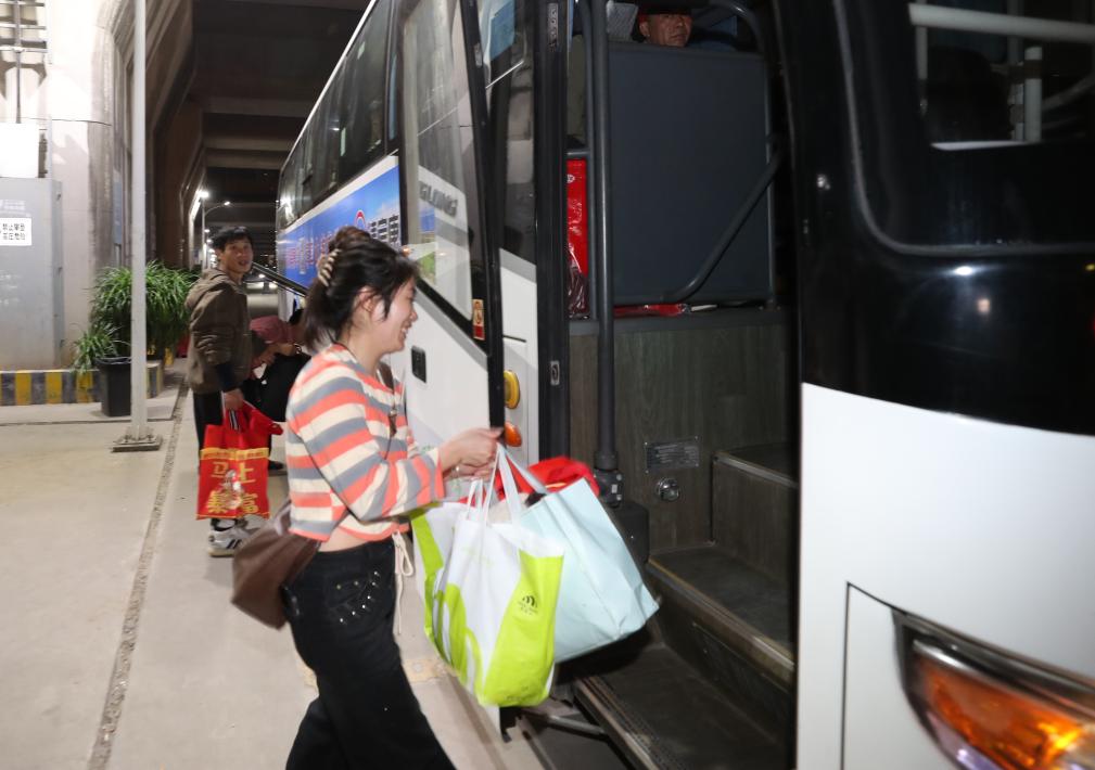 返崗人員抵達廣州南站后登上接駁大巴去往務(wù)工地。新華社發(fā)