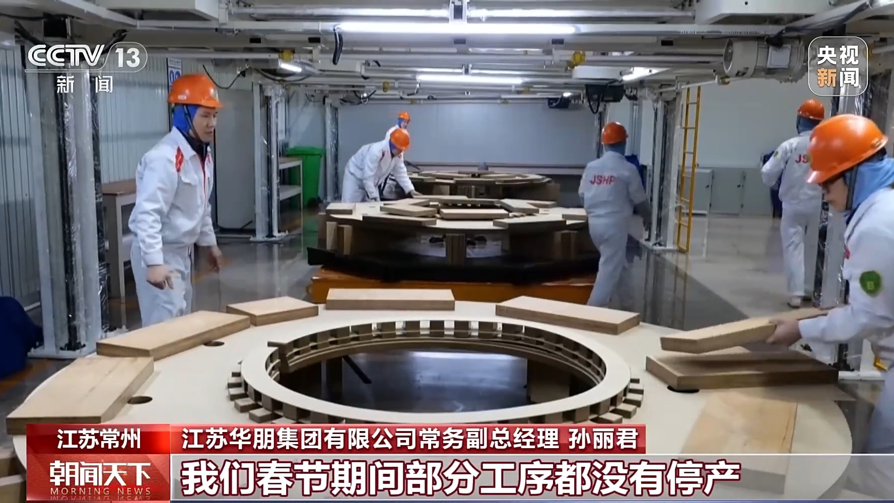 江蘇華朋集團(tuán)有限公司常務(wù)副總經(jīng)理 孫麗君:眼下,我們?cè)谑钟唵我殉^30億元,其中出口訂單超過20億元,現(xiàn)在訂單已經(jīng)排到年底。為了搶抓工期,確保訂單按時(shí)交付,我們春節(jié)期間部分工序都沒有停產(chǎn)。