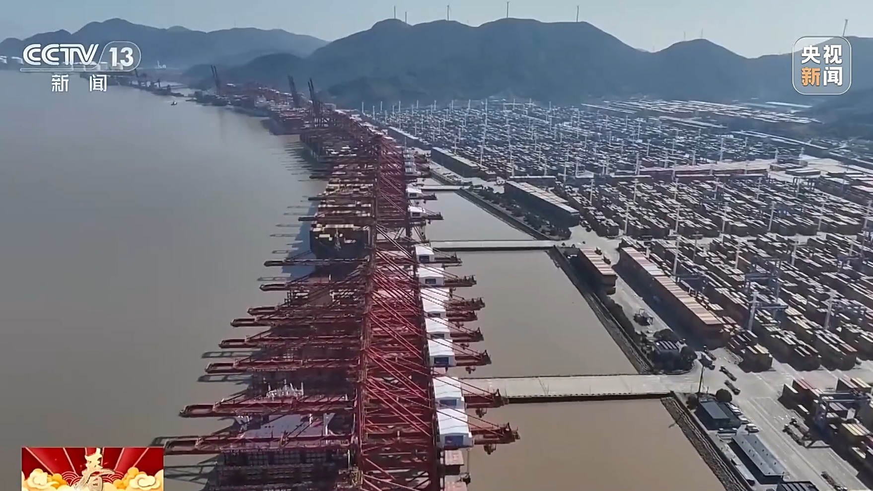 陸路班列接續(xù)開行,海上和空中的貿(mào)易鏈接同樣密切。寧波舟山港在春節(jié)期間裝卸作業(yè)24小時(shí)不間斷。大年初一到初六,寧波舟山港完成集裝箱吞吐量超78萬(wàn)標(biāo)準(zhǔn)箱,同比增長(zhǎng)超17%。