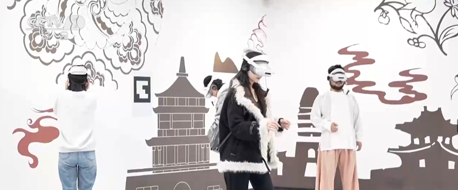 春節(jié)期間,隨處可見的科技元素助力提升游客體驗。在西安長安十二時辰主題街區(qū),游客戴上XR設備即可沉浸式開啟長安地宮探秘之旅。