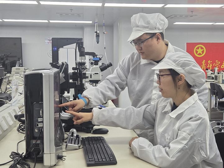 2月24日,春節(jié)假期后首個(gè)工作日。8時(shí),江蘇金陵機(jī)械制造總廠的超凈間里,無影燈準(zhǔn)時(shí)亮起。33歲的首席技師張雯集換上防靜電服,快步走向工作臺。這是他每天開啟“微米級挑戰(zhàn)”的固定場景。屏息凝神,手中的鍵合劈刀精準(zhǔn)起落。幾秒后,一個(gè)誤差僅0.003毫米的“蝶形焊點(diǎn)”成型。