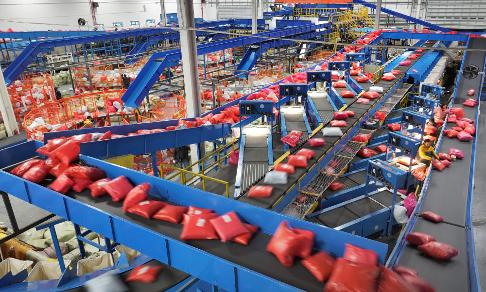 在江蘇南通一家國(guó)際物流園分揀中心,工作人員在分揀貨物(2023年12月20日攝,無(wú)人機(jī)照片)?!笆奈濉逼陂g,面對(duì)地緣政治風(fēng)險(xiǎn)和貿(mào)易壁壘,我國(guó)以跨境電商、保稅維修、市場(chǎng)采購(gòu)等為代表的新業(yè)態(tài)新模式助力各國(guó)消費(fèi)者、生產(chǎn)者“買(mǎi)全球、賣(mài)全球”,成為穩(wěn)外貿(mào)的重要引擎。