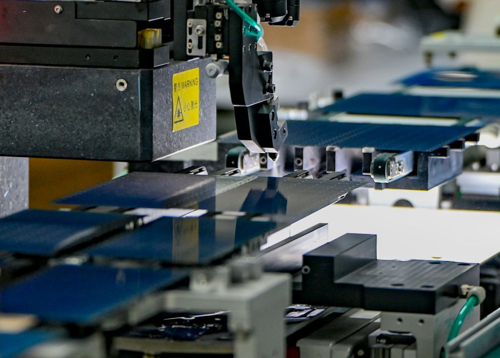在新疆巴音郭楞蒙古自治州若羌縣一家新能源有限公司,全自動(dòng)劃片機(jī)在切割光伏電池片(2025年9月22日攝)?!笆奈濉逼陂g,電動(dòng)汽車(chē)、光伏產(chǎn)品、鋰電池等“新三樣”產(chǎn)品2025年出口規(guī)模接近1.3萬(wàn)億元,比2020年增長(zhǎng)3.5倍。