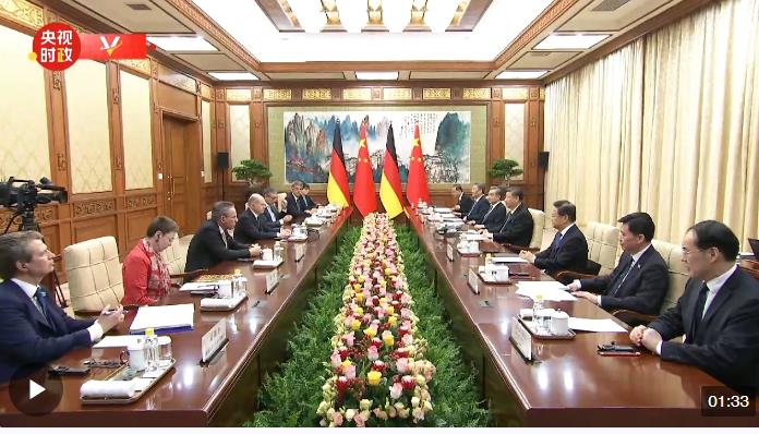 4月16日上午,國家主席習近平在北京釣魚臺國賓館會見德國總理朔爾茨。