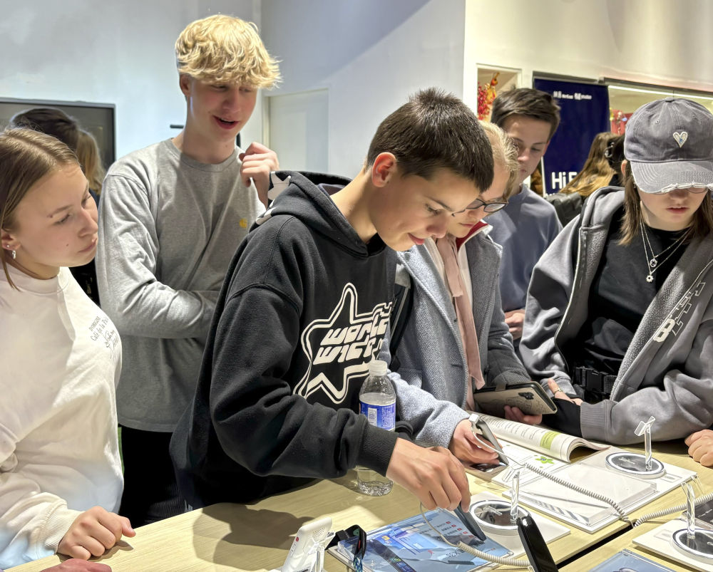 2024年4月9日,中德兩國中學生在位于北京中關村軟件園一家企業(yè)參觀。 新華社記者 趙旭 攝