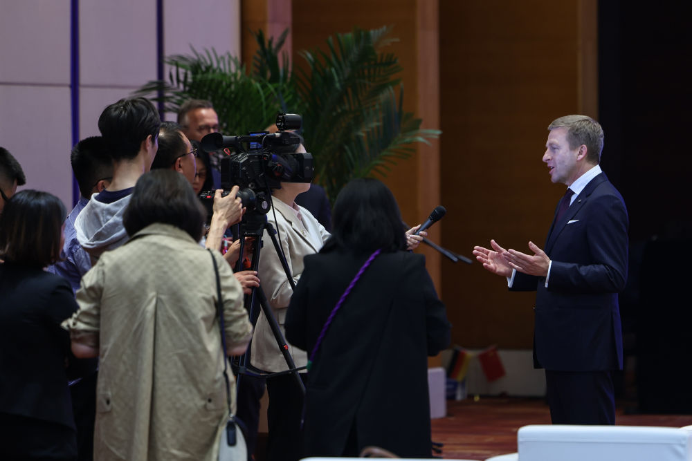 2024年4月26日,遼寧省沈陽市與寶馬集團深化戰(zhàn)略合作簽約儀式在沈陽舉行,這是寶馬集團董事長齊普策接受采訪。 新華社記者 潘昱龍 攝