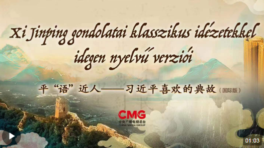 在中國國家主席習近平將對匈牙利進行國事訪問之際,由中央廣播電視總臺制作的《平“語”近人——習近平喜歡的典故》(國際版),將于當?shù)貢r間5月8日在匈牙利國家電視臺啟播。當?shù)貢r間5月4日起,節(jié)目的預告及宣傳片陸續(xù)在匈牙利民族報網(wǎng)站、佩斯新聞網(wǎng)、南佩斯在線網(wǎng)、西峰網(wǎng)、東部生活網(wǎng)等匈牙利多家主流媒體平臺滾動播出。