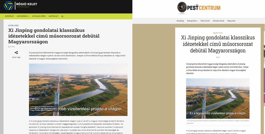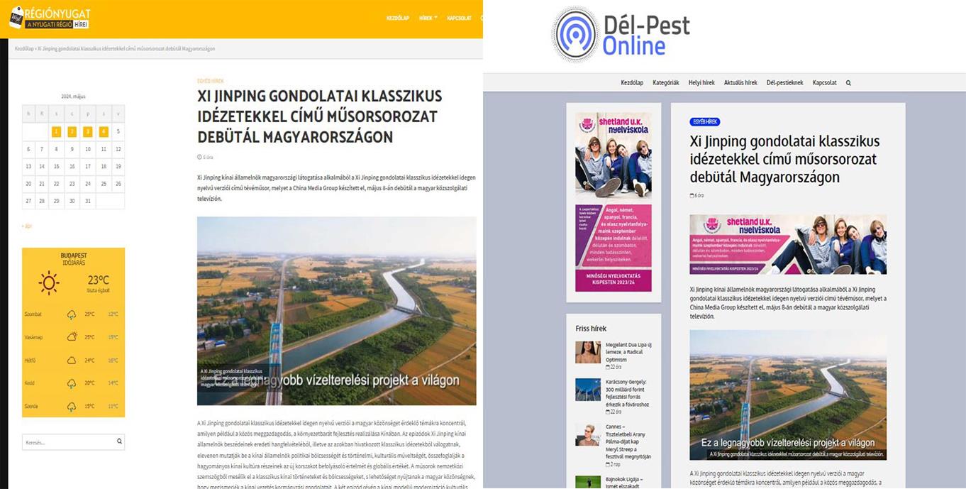 此外,當?shù)貢r間5月4日,匈牙利東部生活網(wǎng)、匈牙利佩斯中心網(wǎng)、匈牙利西峰網(wǎng)、南佩斯在線網(wǎng)等對《平“語”近人——習近平喜歡的典故》(國際版)即將播出的消息進行了報道。匈牙利東部生活網(wǎng)主要以介紹亞洲以及中東歐地區(qū)內(nèi)容為主,在匈牙利擁有廣泛的受眾群體。匈牙利佩斯中心網(wǎng)是布達佩斯地區(qū)最主要的商業(yè)媒體網(wǎng)站。