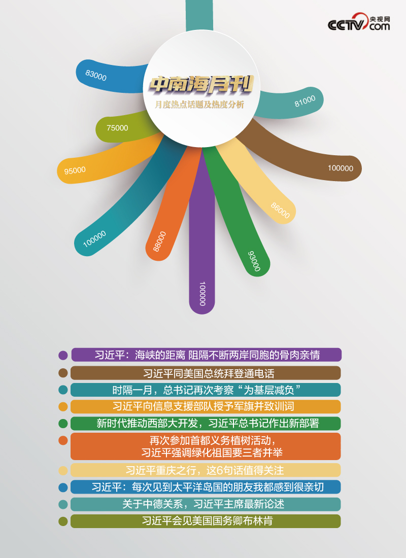 央視網(wǎng)“智聞”系統(tǒng)提取分析2024年4月全網(wǎng)時政新聞熱點顯示,“時隔一月,總書記再次考察‘為基層減負’”“習近平向信息支援部隊授予軍旗并致訓詞”“習近平同美國總統(tǒng)拜登通電話”等話題備受關注。