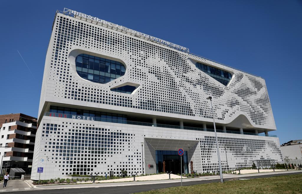 這是2024年4月28日在塞爾維亞貝爾格萊德拍攝的中國文化中心。新華社記者李穎攝