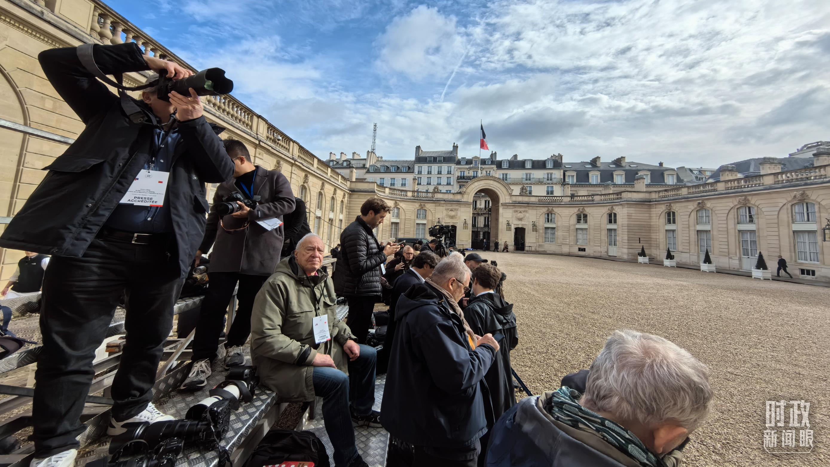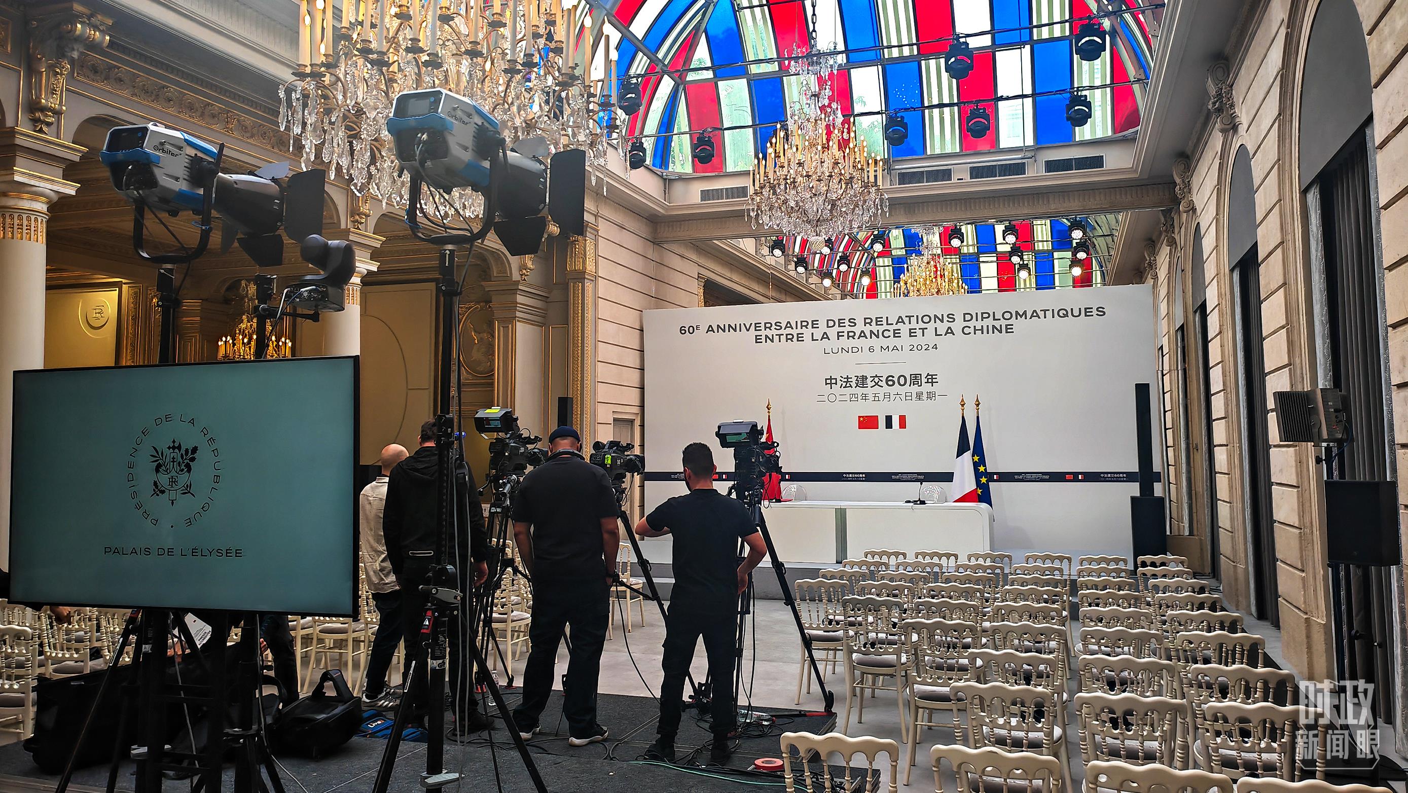 習(xí)主席在巴黎愛麗舍宮同馬克龍總統(tǒng)會(huì)談后共同會(huì)見記者,這是會(huì)見開始前的現(xiàn)場(chǎng)。(總臺(tái)央視記者劉琦拍攝)